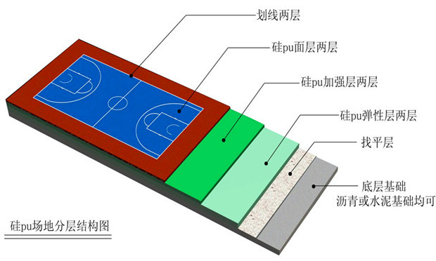 精巧设计的“面硬里软”三层复合结构硅PU球场材料,形成科学运动安全保障体系,既有效保护运动受伤同时又满足震动吸收和反弹的要求。